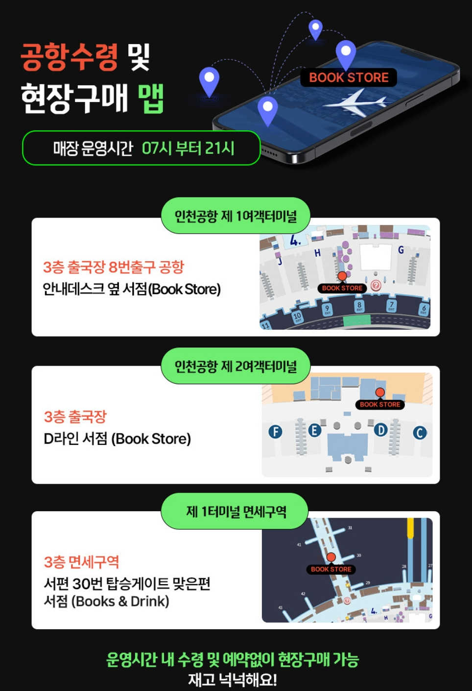 유심 수령은 공항 내 서점에서 가능한데 매장 운영시간인 7시부터 21시까지만 수령이 가능하니,