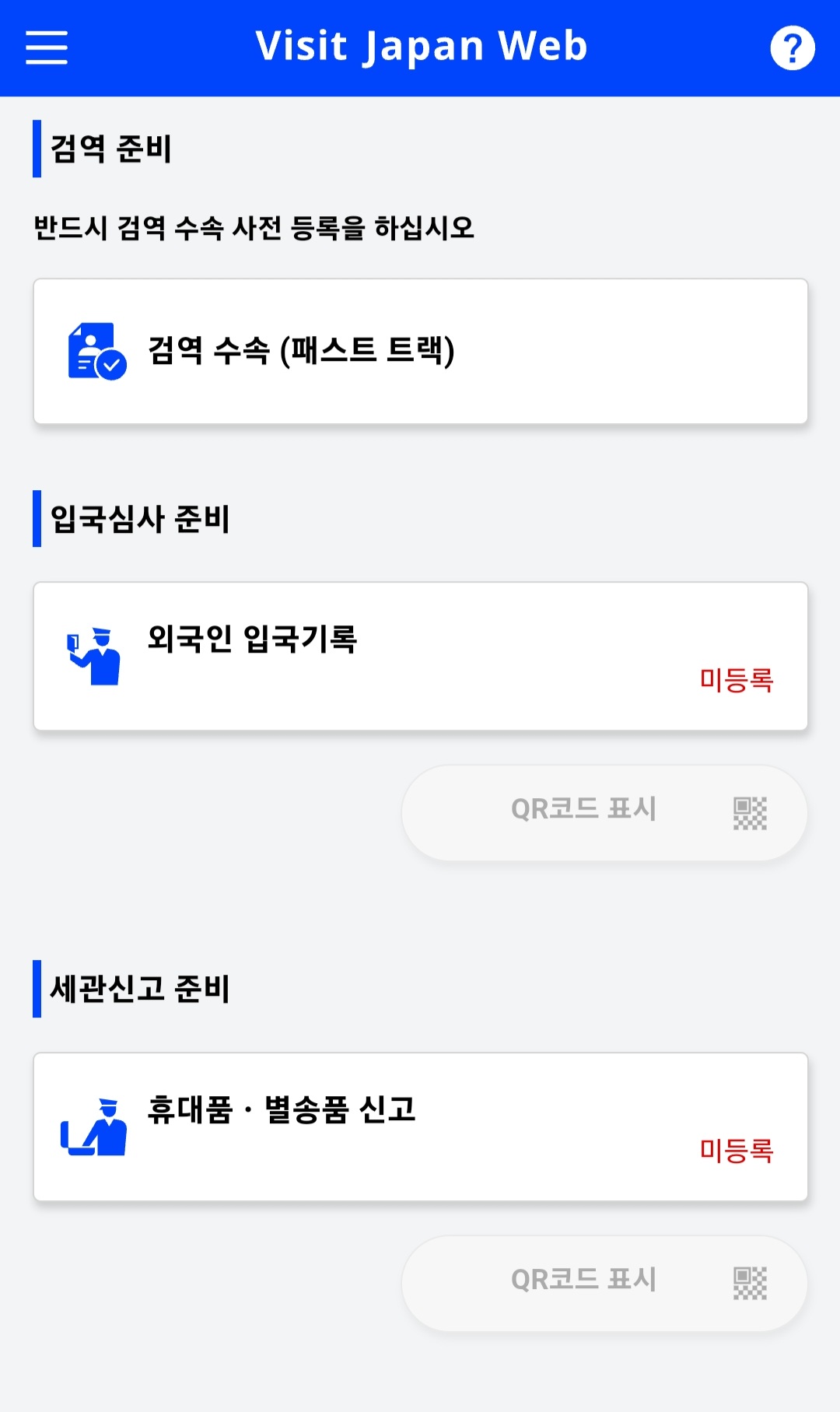 Visit Japan Web(https://vjw-lp.digital.go.jp/ko/) 에 접속해서 알려주는 step에 따라 진행하면 된다.